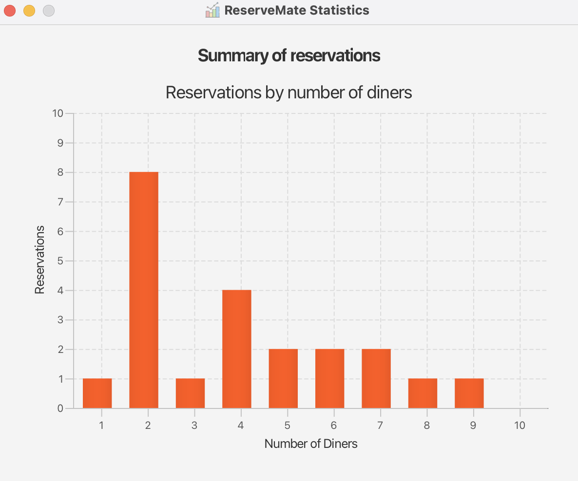 ReserveMate is a desktop application designed for restaurant managers to manage reservations. It is optimized for use via a Command Line Interface (CLI), while still offering the benefits of a Graphical User Interface (GUI). If you can type fast, ReserveMate helps you complete reservation management tasks more quickly and efficiently than traditional GUI apps!